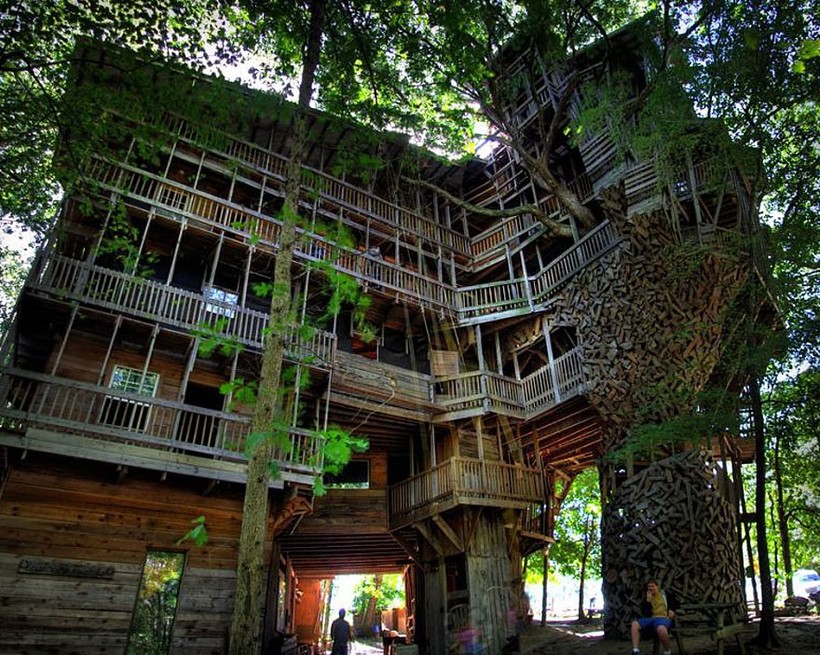 Этот дом, возможно, самый большой из всех существующих на деревьях. Министр Гораций Берджесс начал строить его еще в 1993 году и не может остановиться до сих пор. Дом построен вокруг массивного старого дуба, еще шесть деревьев используются для поддержки необычного сооружения.