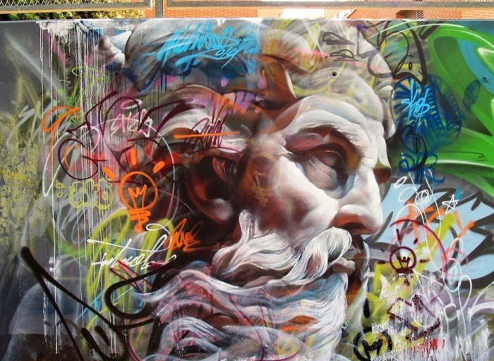Испанский стрит-арт дуэт Пичи и Аво создали изображение из древнегреческой мифологии.