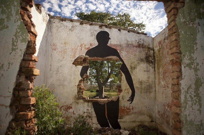 Человек и природа в уличном рисунке Дэвида де ла Мано, Сорьяно, Уругвай.