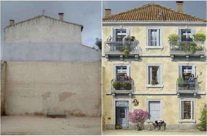 Разрисованный фасад дома от художника-муралиста Патрика Коммеси.