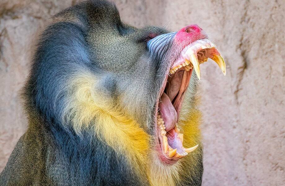 Мандрилы — это агрессивные обезьяны, которые часто нападают первыми на тех, кто, по их мнению, представляет угрозу. Самцы мандрилов гораздо крупнее самок и могут вырастать до 80 сантиметров в холке и иметь массу около 50 килограммов. Нос мандрилов — главная выделяющаяся часть. Синие полосы на носу не дадут спутать их с другими видами обезьян. Главную опасность для окружающих представляют гигантские клыки, которые по размеру не уступают львиным. Мандрилы нападают, если зайти их на территорию.