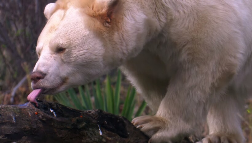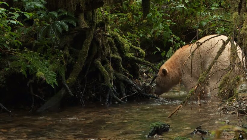 «Глубоко в тропических лесах Канады прячется священный хищник. Неуловимый, редкий и величественный, этот гигант веками очаровывал людей. Это не полярный медведь и не альбинос. Это призрачный, или кермодский, медведь. Сегодня мы находимся на побережье Британской Колумбии в Кермоде, где постараемся отыскать этого призрака. Холодно, и медведи готовятся к спячке, что затрудняет поиски. Но тропический лес дает нам шанс увидеть мишку во время последних кормлений. Мы выбрали реку, где заметили черных медведей, и стали ждать призрачного.