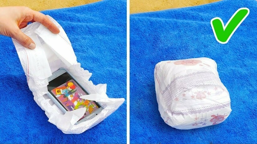 Представьте, что вы лежите на пляже и хотите окунуться в прохладную воду, но вам некому оставить телефон, карты с деньгами и ключ от номера. Как быть? Опять же положите их на самый вид! При правильной маскировке никто не польстится на ваше добро. Для «сейфа» можно использовать упаковку из под влажных салфеток с пластикой крышкой или обычный детский памперс. Вряд ли кому-то придет в голову брать их в руки.