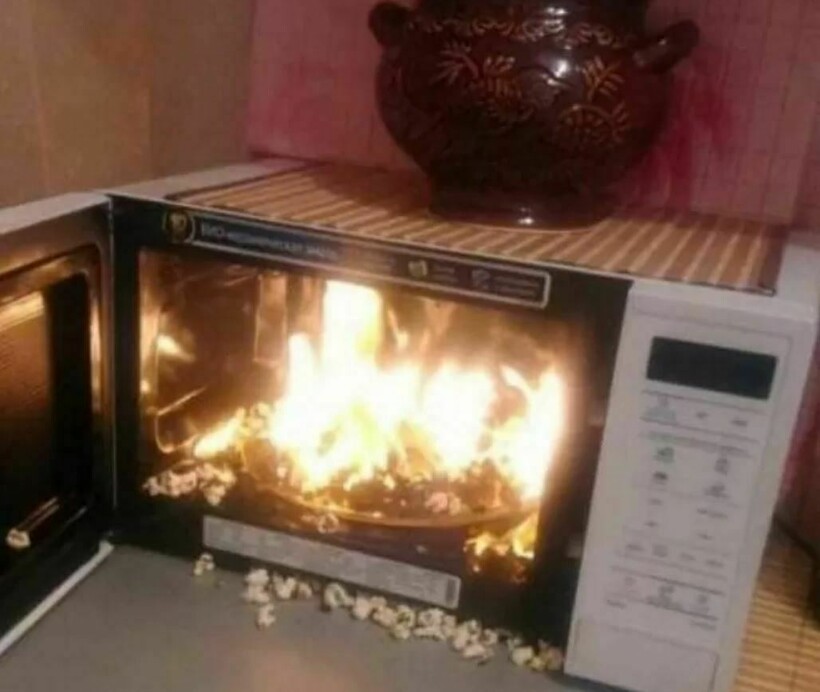 Микроволновая печь подожгла попкорн и отменила вечерний просмотр фильма.