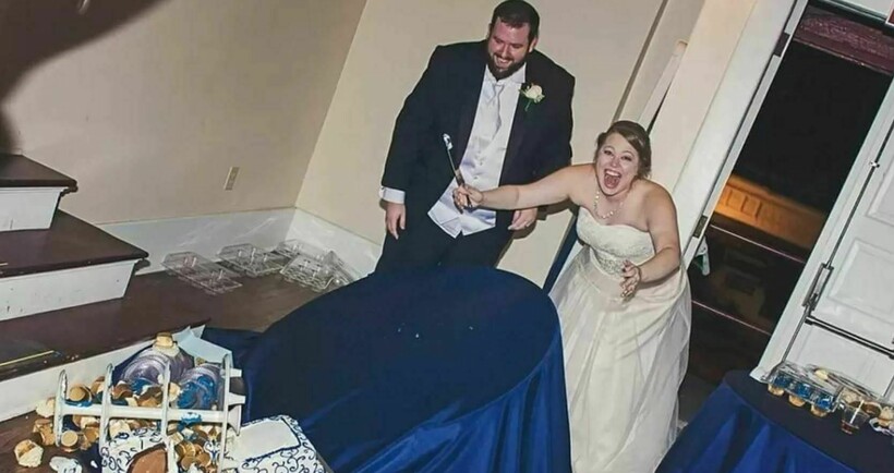 Свадьба пошла немного не по плану, когда со стола полетела скатерть. Хорошо, что разбилась тарелка, а не сердце невесты.