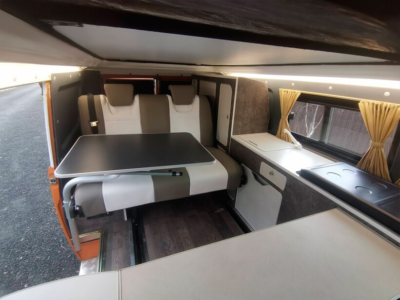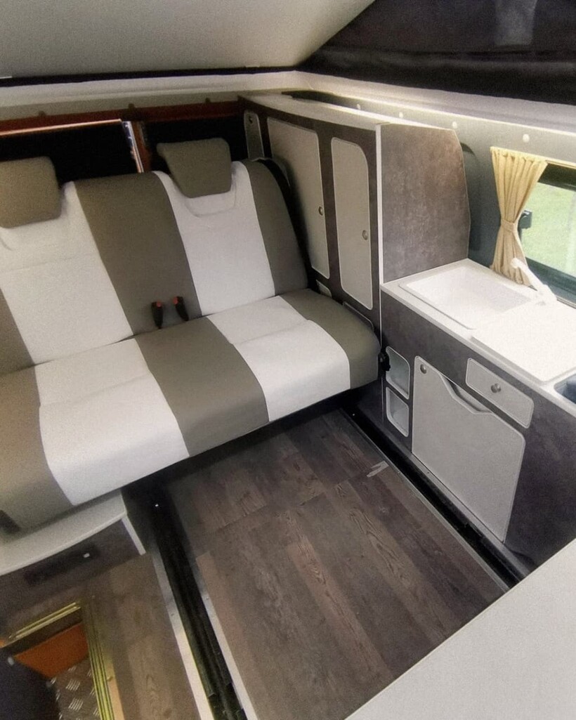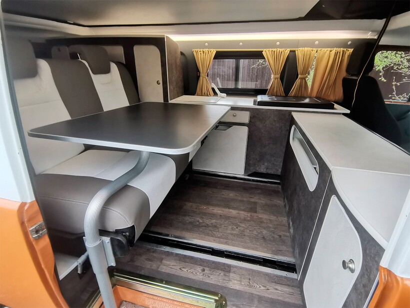 В кемпере установлена розетка и разъем для USB, так что Netflix и ваши гаджеты всегда будут с пассажирами. Вся мебель внутри сделана из ламинированной фанеры, устойчивой к влаге.