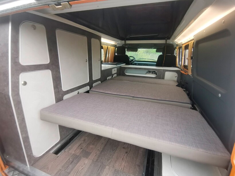 А вот и новый кемпер. По словам производителей, его модифицировали, сделали более комфортным и функциональным. Так, внутри разместилась кухня, туалет, баки для воды и даже два полноценных спальных места.