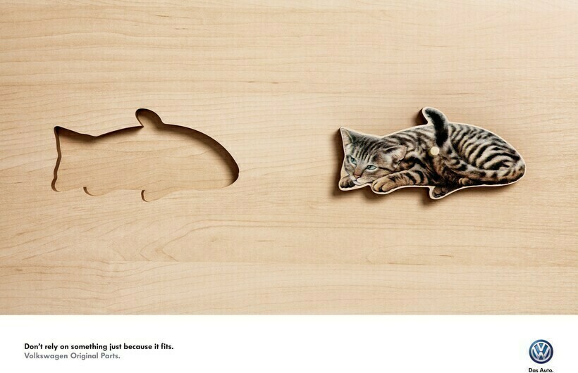 Данная кампания с участием котика была направлена на то, чтобы призвать людей покупать только официальные запчасти для автомобиля. Создатели указывают, что клиентам не следует полагаться только на то, что подходит, ярко демонстрируя свой посыл через формы двух фигурок — рыбки и кота. Кстати, предлагаем посмотреть и на других удивительных котов, которые оказались слишком большими для городских улиц.