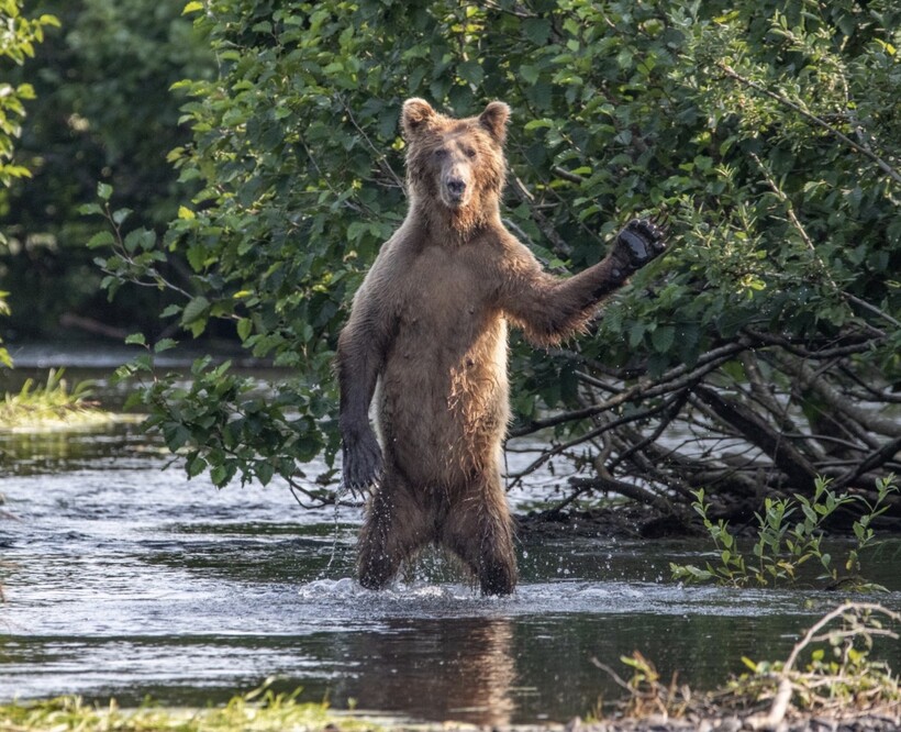 Несмотря на свои гигантские размеры, косолапый зверь отлично маскируется в лесном массиве