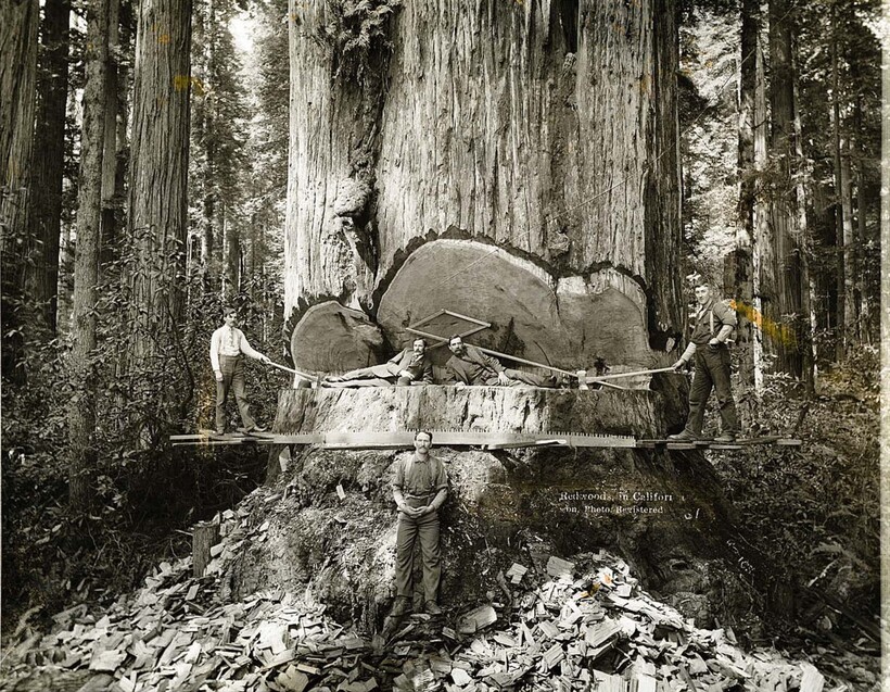 Первые поселенцы, увидев секвойи, сразу прикинули, что с одного поваленного дерева можно запастись дровами на полжизни вперед, а потому начали безжалостно пилить и рубить вековые кипарисовые растения. Первые пару лет работа шла активно, и древесина шла на строительство домов, изготовление мебели и для отопления домов. Но вскоре люди стали замечать: кора слишком толстая, древесина слишком хрупкая и влажная, да еще и пропитана огромным количеством влаги. Из секвойи получаются ненадежные дома, слишком шаткая и недолговечная мебель, а чтобы протопить дом, надо сушить древесину долго и упорно. Было много других, более подходящих деревьев для всех этих целей.
