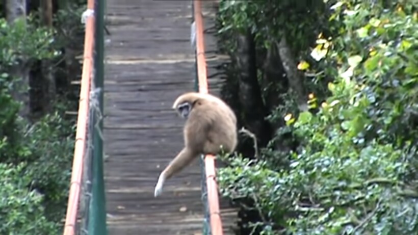 Фрагментация лесов связана с изменением климата, и это довольно серьезная проблема для сохранения биоразнообразия. Ведь гиббоны почти все свое время проводят на деревьях, а разделение лесов может привести к тому, что животные будут делиться на более мелкие популяции, а затем исчезнут совсем. Пока приматы привыкали к новому способу передвижения, биологи благодаря фотоловушкам увидели, что теперь обезьяны смогут свободно перемещаться по двум участкам леса так же активно, как и до оползня. Ученых заинтересовал еще один интересный факт: приматы перемещались по мосту словно циркачи, ловко шагая по канату, они предпочитали ходить по веревке, а не повиснуть на ней, перебираясь на другую сторону за счет своих передних лап.