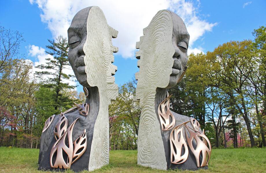 А это другая скульптура ― Хартвуд, или Heartwood, что дословно переводится как «сердцевина». Поппер изобразил лицо женщины, которое разделено пополам. Между этими половинами есть проход.