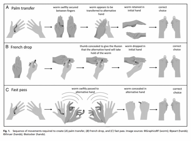 Однако птиц так просто не заинтересуешь, и далеко не все они любят блестящие предметы, в связи с чем в дело пошли черви. Их перемещали в руках, очень быстро перебрасывали и делали почти все то же, что и с обычной монеткой или каким-то другим предметом. Казалось бы, результат должен быть очевиден — птицы обмануты, а фокусник ликует. Но если с людьми этот эксперимент сработал, то вот в отношении птиц все оказалось не так просто.