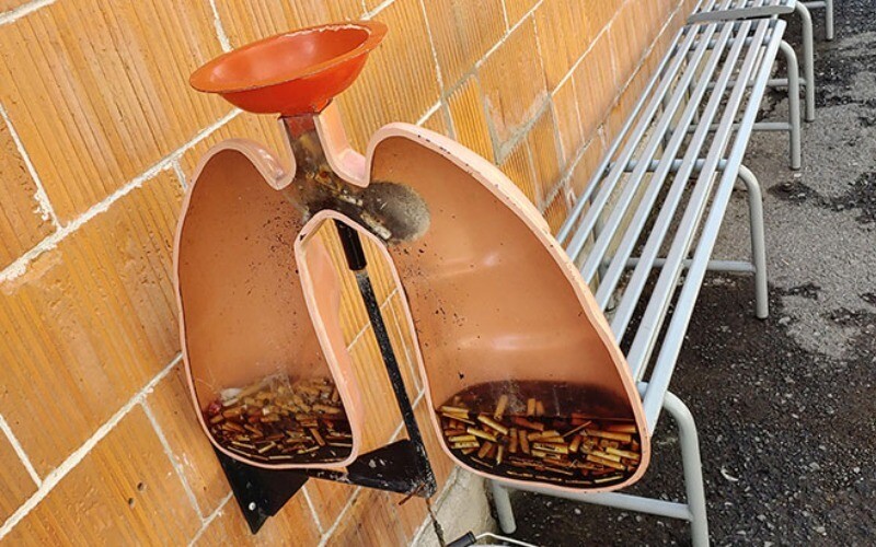 Необычная пепельница ярко демонстрирует вред, который курение наносит легким. Ее прозрачная стенка показывает, сколько мусора попадает в наш организм благодаря нездоровой привычке.