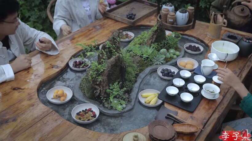 Автор видеоролика, популярный китайский блогер Ли Цзыци, живет в горной деревне и показывает, как существовали ее предки, делая вручную многие виды работ и обходясь без магазинных продуктов. В этом видеосюжете Ли демонстрирует не только чайную церемонию, но также весь процесс сбора и приготовления чайных листьев. В Китае люди предпочитают зеленый чай, который они зовут улуном. Он готовится только из свежих листочков и почек чайного куста, а процесс может занять дни.