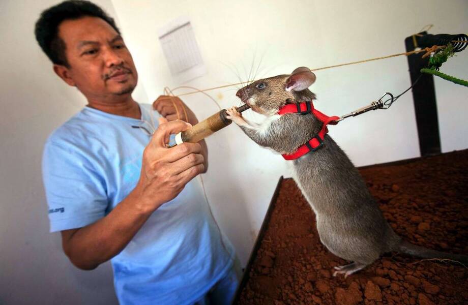 Гамбийская крыса Магава является практически первоклассным солдатом, ветераном, ушедшим на пенсию. Последние пять лет животное занималось поиском взрывчатых веществ, и за это время она сумела посодействовать обнаружению более ста потенциально способных детонировать устройств. Можно только догадываться, какому количеству людей она спасла жизни.