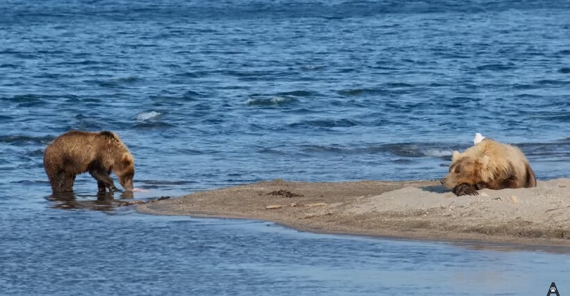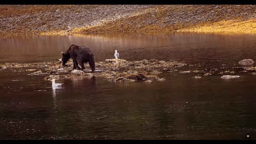 «Медведи стараются запастись как можно большим количеством килограммов, ведь скоро зима, и еды станет очень мало. Чтобы пережить скудные месяцы, гризли, как и иные медведи, впадают в спячку. Но чтобы проснуться через 6 месяцев, нужно съесть очень много еды. Вот почему гризли самые крупные медведи на севере — им нужно больше жира, чтобы пережить долгие зимние месяцы. Интересно, что 80% всего рациона составляет не мясо или рыба, а травы, орехи, грибы и ягоды. По утрам же мишки предпочитают насекомых как превосходный источник белка. Медведи обладают сильным нюхом и могут учуять колонию насекомых за километр. Во времена, когда лосося мало, гризли могут переходить южнее, чтобы охотиться на волков, пум, копытных и даже медведей поменьше», — рассказывает Даниэль.