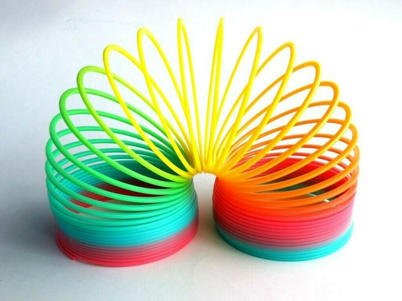 Ее создали в США в 1943 году. Это была прочная стальная пружина, которая занимала всех людей тем, что самостоятельно «спускалась» по лестнице. Но это был лишь один трюк пружинки из многих. В Россию же она пришла в виде пластиковой игрушки с радужным окрасом, который надолго сохранился в памяти.