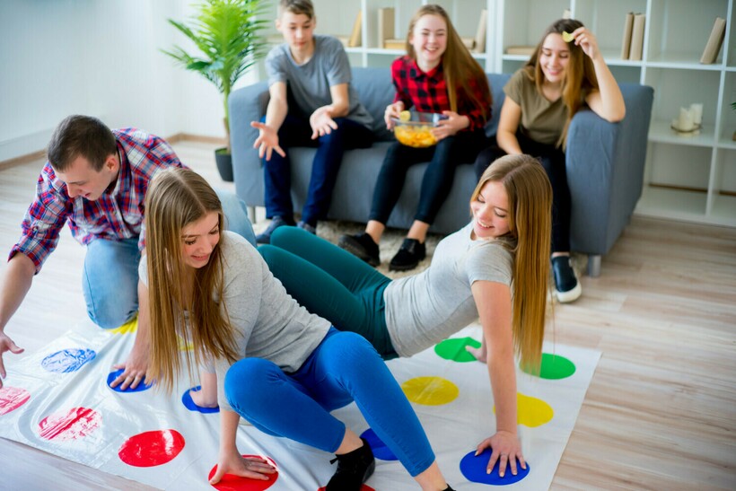 Интересно, что эта игра называется настольной, хотя она скорее напольная. На большом полотне нарисованы круги разных цветов. Люди вращают стрелки на цветном диске, которые указывают, на какой круг надо поставить руку или ногу. Самое интересное — играть небольшой компанией и умудряться занять свой круг. В отличие от предыдущих игрушек в статье твистет полюбился не детям, а подросткам и молодежи.