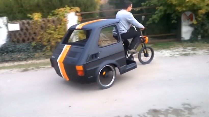 Сейчас очень сложно выбрать средство передвижения. Мы всегда стараемся подобрать наиболее комфортный вариант, который будет сочетать все удобства. Для больших городов велосипеды являются гораздо более удобным средством передвижения, чем автомобили, потому что велосипед мобильнее. Однако в холодную погоду на велосипеде далеко не уедешь. Мужчина из следующего ролика так и не смог сделать выбор и решил совместить машину и велосипед.