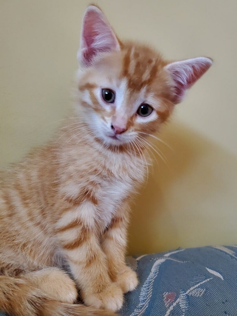 Котенок, имеющий на голове редкий рисунок собаки