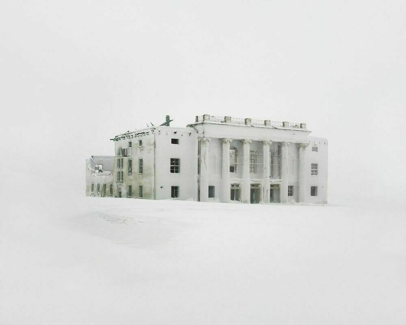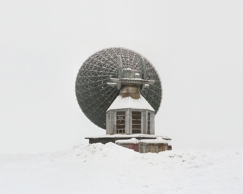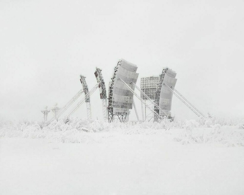 Все сооружения, которые запечатлел Ткаченко, на белом заснеженном фоне, где практически не видно никаких границ, лишь грандиозная постройка времен СССР. Этот фон только подчеркивает то, что осталось от великой идеи мирового господства и всесилия, которое обернулось экономической и политической катастрофой для страны.