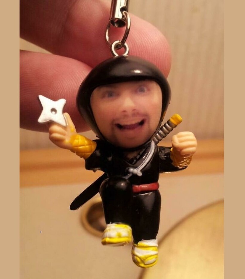 Этот брелок сделан в вендинговом аппарате в Японии: он печатает ваше лицо на фигурке самурая