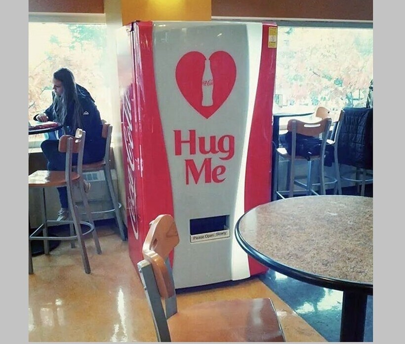 Автомат-обнимашка: он наливает бесплатную кока-колу за объятия