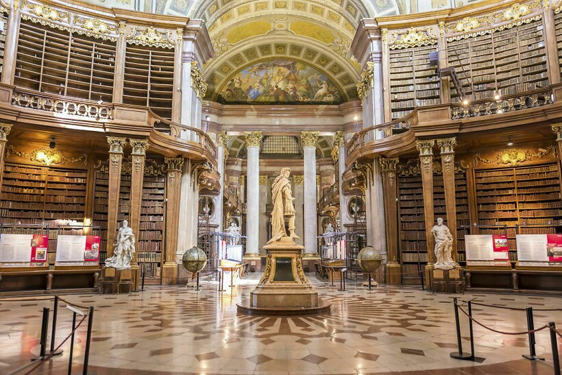 Купола, фрески, позолоченные люстры и интерьер в стиле барокко. Многие посещают австрийскую библиотеку не ради книг, а ради самой атмосферы этого колоритного здания.