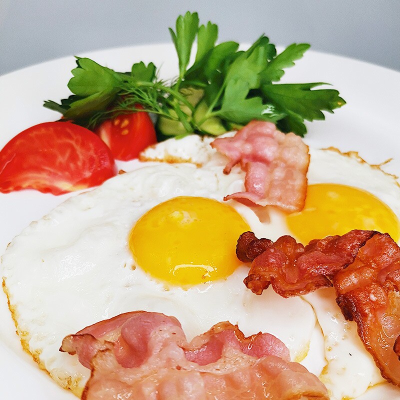 Пожалуй, самый популярный во всем мире завтрак: глазунья с тонкими ломтиками бекона. Но вот соединять их не стоит: белковый заряд от яиц быстро испортится жирным после обжарки беконом. Лучше всего для начала съесть яйцо, а чуть позже мясо, чтобы дать организму передышку.