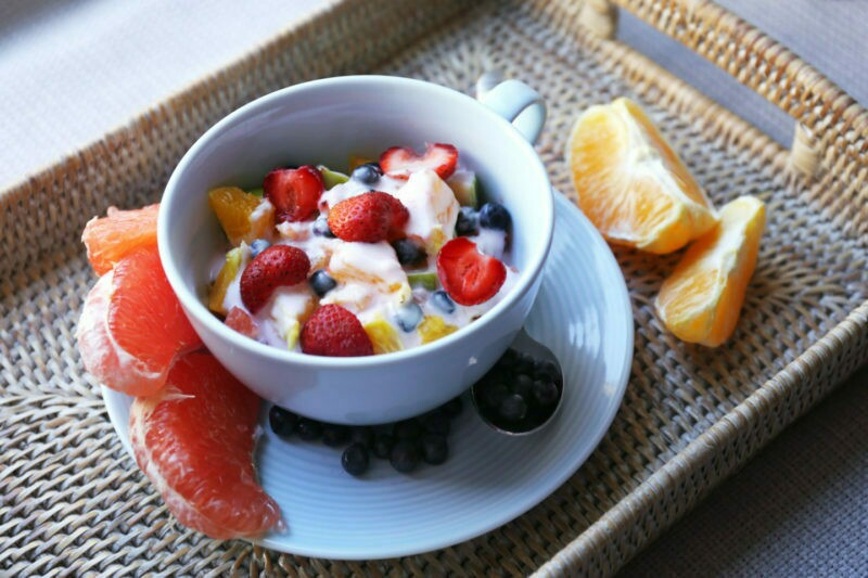 Этот завтрак или перекус в целом полезен, ведь йогурт — кисломолочный продукт, в котором еще и немало белка, а, как мы говорили выше, белок на завтрак — идеальный вариант. Всю картину портят фрукты со своей избыточной в данной ситуации кислотностью. В желудке образуется кислая среда, вырабатываются токсины и вредные вещества. Так что, лучше исключите фрукты из завтрака с йогуртом.