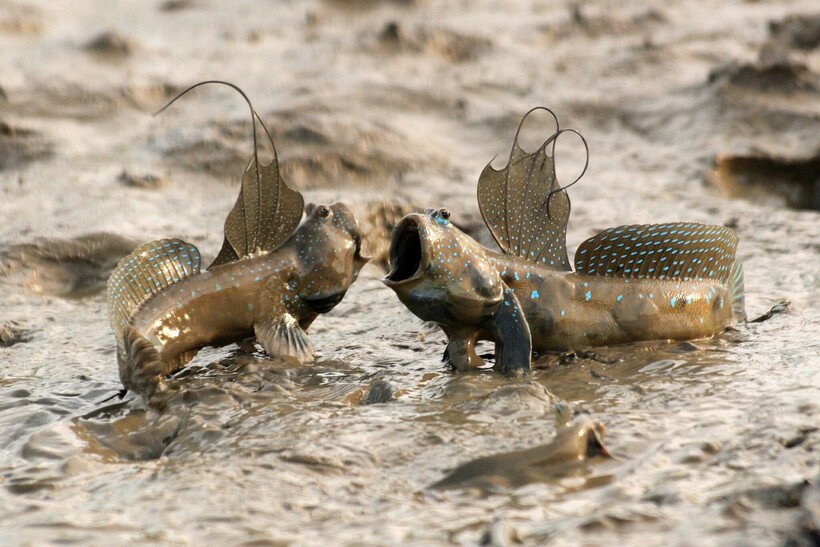 Проявление столь неординарных способностей у рыбы значительно повышает ее шансы выжить. Змееголов, например, может спокойно пробыть на суше до пяти суток. Выбирается он из своей привычной среды с целью подыскать для себя водоем получше. Еще один пример — илистые прыгуны, которые внешне больше похожи на земноводных, чем на рыб. Во время отливов они заполняют высохшее дно и поедают различную живность и растительность. А недавно рассказывали, что бразильский рыбак снял на видео гигантскую анаконду, перегородившую собой всю реку.