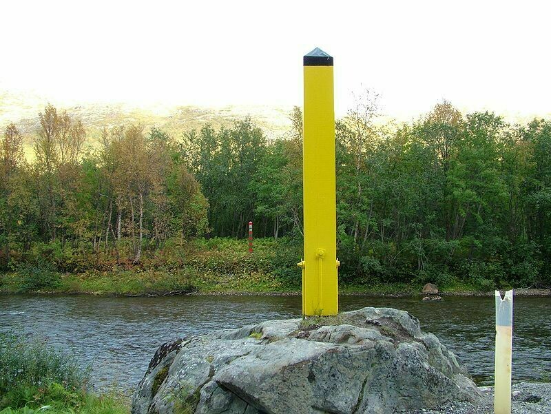 Граница с Норвегией расположена за Полярным кругом и обозначена пограничными столбами
