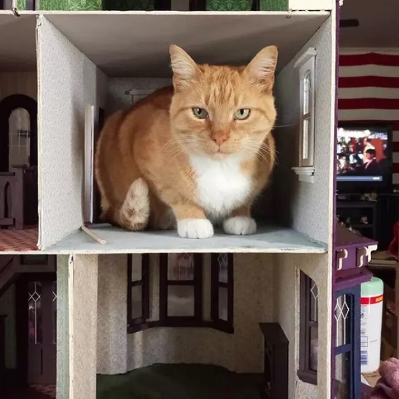Технически этот кот не внутри домика, но дайте ему немного времени