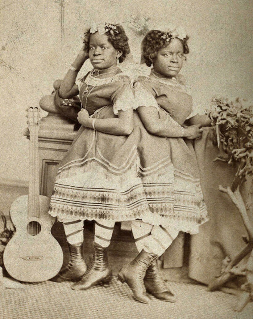 Судьба сросшихся девочек Милли и Кристины Маккой была намного сложнее. Они родились в семье рабов на территории Калифорнии.