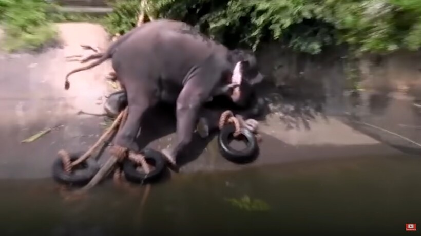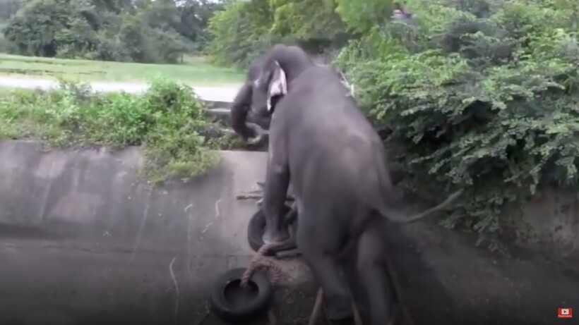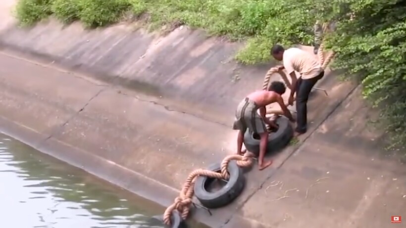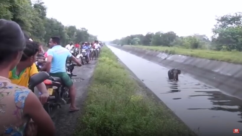 Любопытный слон, гуляющий в одиночестве, может попасть в беду, как однажды это случилось в Шри-Ланке. Оказавшись в канале, слон попал в ловушку, из которой не мог выбраться самостоятельно. Уровень воды был не настолько высок, чтобы животное утонуло, однако крутые и скользкие берега не позволяли ему выбраться на свободу. Зверю никак не удавалось взобраться по склону, и он уже изрядно выбился из сил. Но местные жители не растерялись и смастерили самодельную лестницу из веревок и автомобильных покрышек. Кроме того, люди начали использовать хлопушки, чтобы привлечь внимание серого гиганта и подогнать его к спасательной конструкции. Спустя несколько попыток, кажется, что слон сдался, но все же ему удалось взобраться наверх.