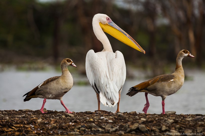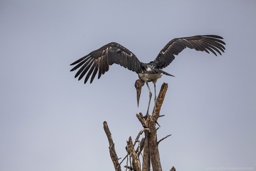 Все же основное богатство озера — пернатые. На каждой ветке сидит по птице, разных видов — от бакланов и пеликанов и до огромных марабу. Собственно марабу) Все марабу будто уже ощипанные с лысоватой башкой. Странная птица. Мы даже в Найроби их видели, ковыряющимися в мусоре.