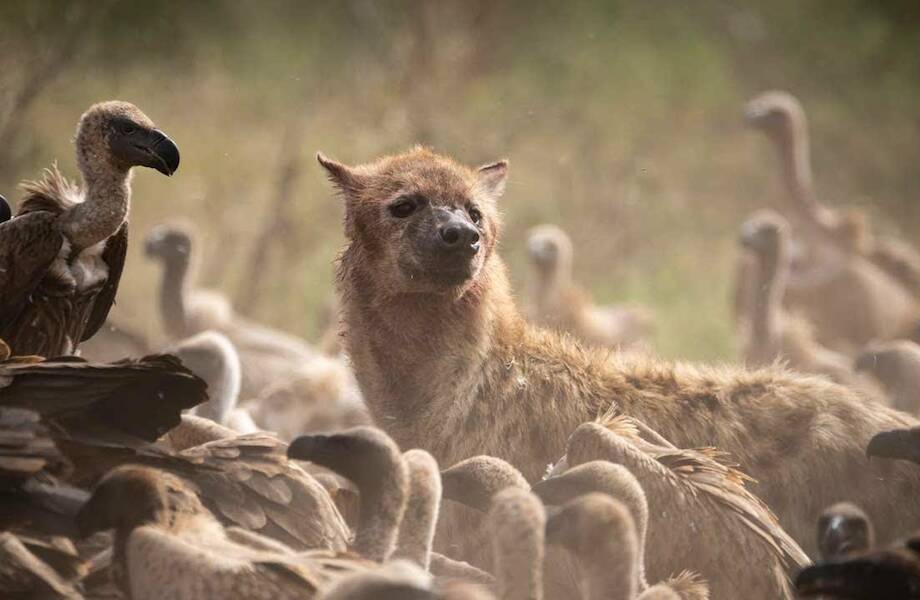 Стервятников, предпочитающих в пищу падаль, считают санитарами природы. Почему же они предпочли не свежую пищу, а не охотятся на живую дичь? Иногда кажется, что они просто сказали себе: «А зачем заморачиваться»? К падальщикам можно отнести и гиен, выполняющих похожую миссию. Только они могут добывать себе еду самостоятельно, но и от легкой, лежащей на земле добычи они не откажутся.
