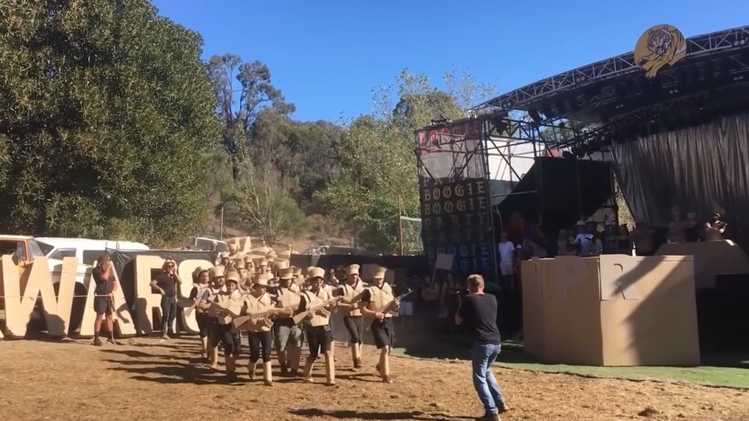 Если вы однажды отправитесь в Австралию и столкнетесь на улицах с людьми в картонных латах и с танками, сделанными из картона, не спешите брать обратный билет, а постарайтесь проникнуться атмосферой. Это картонное мероприятие привязано к музыкальному фестивалю, который проводится раз в год. В этот день все люди выходят на улицу, чтобы сразиться в картонных коробках. Картон, который используется для создания оружия, поставляют самые разные компании. После торжества ответственные за проведение мероприятия люди собирают остатки доспехов и картонной техники.