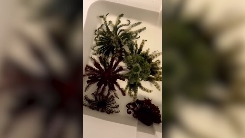 Следующий ролик может напугать арахнофобов, но спешим вас обрадовать — на видео далеко не паук. Сразу сложно понять, что это такое. То ли это странное существо, то ли водоросль, которая по странным причинам очень активно двигается. На самом же деле перед вами морская лилия, которая является родственницей морских ежей. Она выглядит как паук с большим количеством ног, но не имеет к пауку никакого отношения. Это существо маскируется под водоросли, чтобы целым и невредимым.