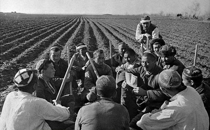 Узбекские колхозники обсуждают план работ. СССР, 30-е годы 20 века.