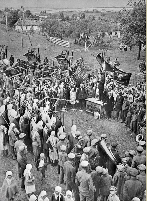 Общее собрание по поводу сбора урожая и проведения плановых работ. СССР, Украина, Киевская область, 30-е годы 20 века.