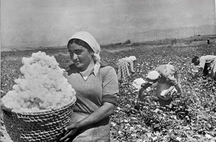 Сбор хлопка во время урожая. СССР, Армения, 30-е годы 20 века.
