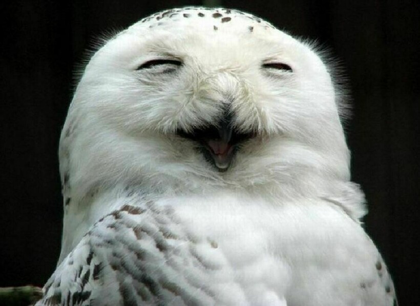 Примерно такое же лицо у людей, когда им делают массаж. Эта сова настолько искренне улыбается, что хочется улыбнуться вместе с ней.