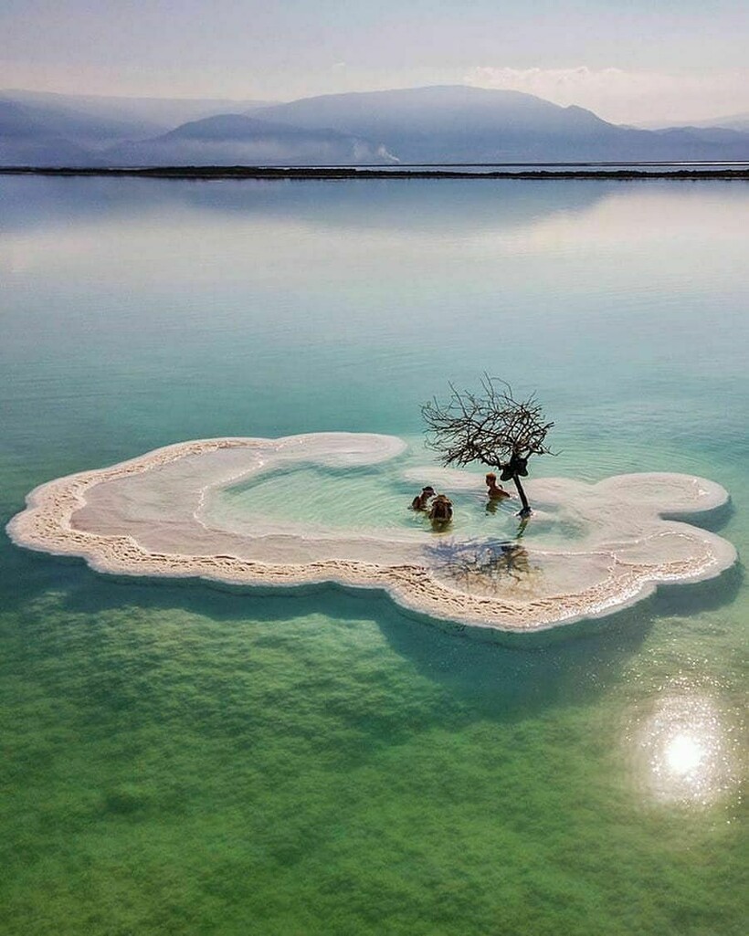 Дерево посреди острова, сложенного из соли, кажется сюрреалистичным. Мертвое море больше чем на 400 метров ниже уровня океана, и считается самой низкой точкой на планете. Всем известно, что этот водоем назван так неслучайно: в нем нет никаких признаков жизни, тут нет водорослей, рыбы и даже насекомых. Все из-за высокой концентрации соли: море примерно в десять раз соленее океана. Именно поэтому удивительно видеть дерево на бездыханном острове, и на растении даже можно заметить почки. Так откуда оно взялось?