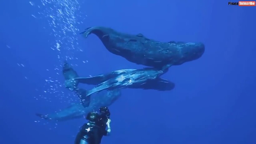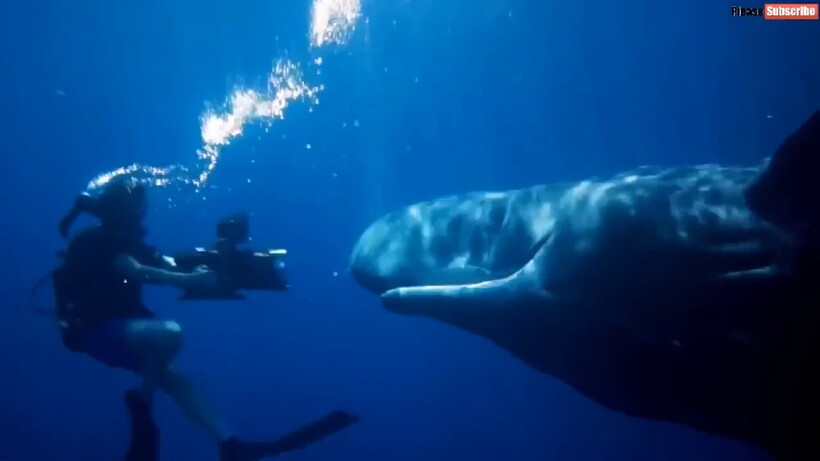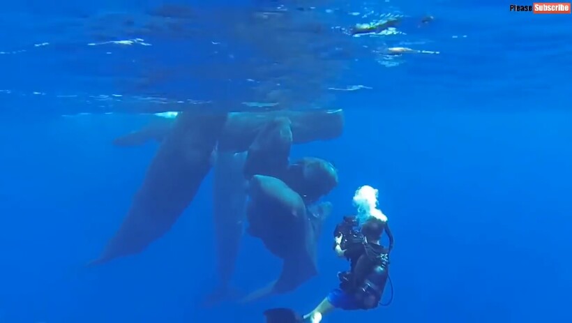 Обычно любое животное, которое охраняет детеныша, довольно настороженно и агрессивно относится к людям или другим нежданным гостям. Но не кашалоты. В видеоролике показано, как эти морские великаны даже заигрывают с дайверами, позируют им на камеру и плавают бок о бок. Может, кашалоты не считают людей опасными, ведь на фоне кита дайвер словно тунец, заплывший не туда, а может мозг кашалотов способен анализировать ситуацию и расценивать потенциальную опасность, а не только замерзать на большой глубине? В этом ученым только предстоит разобраться, когда у них появится шанс.