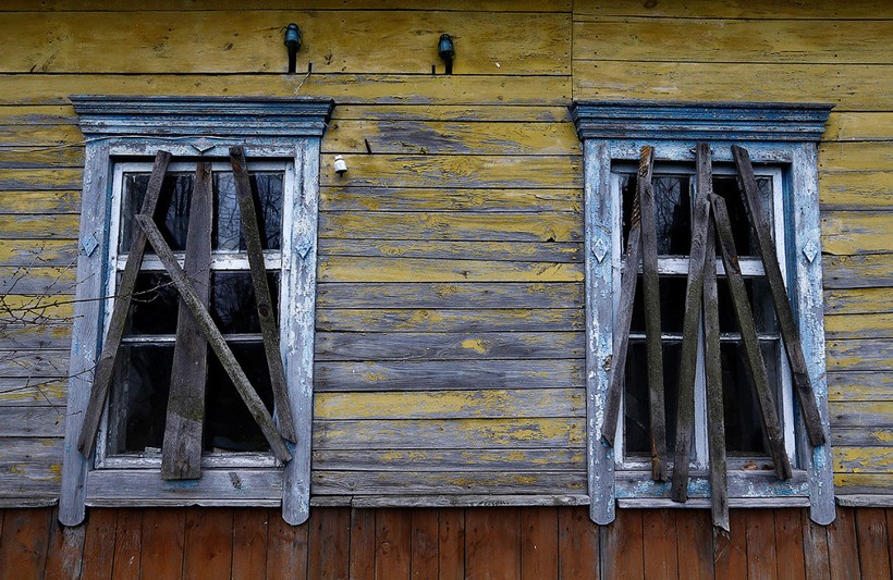 Поблизости с домом старика стоит другой, заброшенный и заколоченный.