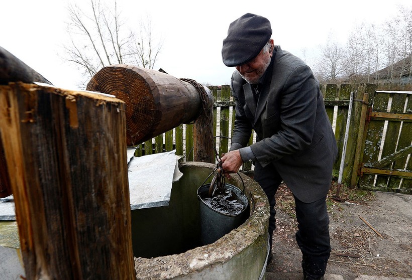 Из этого колодца, который находится у него во дворе, 90-летний дедушка набирает воду.