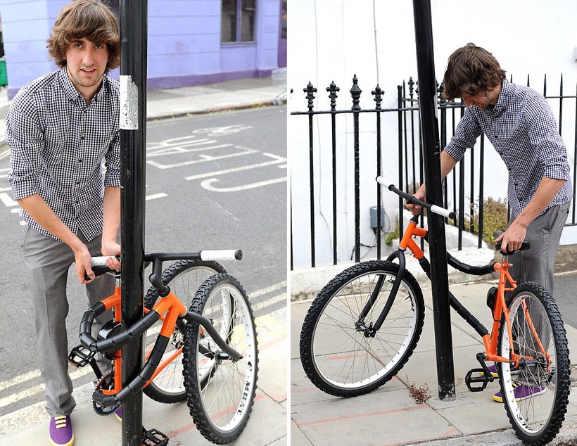 Поистине безумная идея пришла в голову дизайнеру из Великобритании Кевину Скотту. Он решил создать велосипед, который можно сгибать и скручивать. Поэтому, чтобы не бояться, что вашего двухколесного друга угонят, просто закрутите его вокруг стойки.