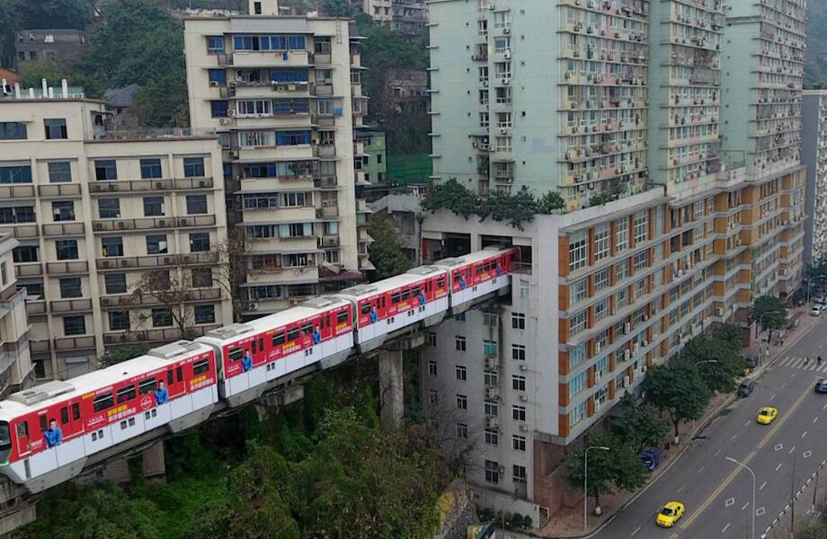 Перенаселение — одна из глобальных проблем человечества. Ее решению специалисты уделяют большое количество своего внимания. Город Чунцин является самым густонаселенным в Китае. Власти города пытаются разместить 30 миллионов человек на относительно небольшой территории. В Чунцине есть определенные проблемы с транспортом. Порой проложить железнодорожные пути становится невозможно из-за того, что везде живут люди. Именно из-за этого одна железная дорога проходит прямо через многоэтажный дом. Строители выделили 2 этажа под станцию, и жильцы дома могут уехать в другой город, не выходя на улицу.